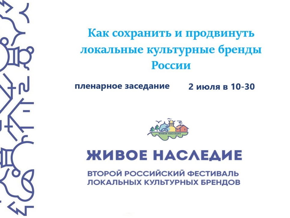 Программа пленарного заседания «Живое наследие: как сохранить и продвинуть локальные культурные бренды России» Большой конференц-зал (1 этаж), 10-30 - 12-00