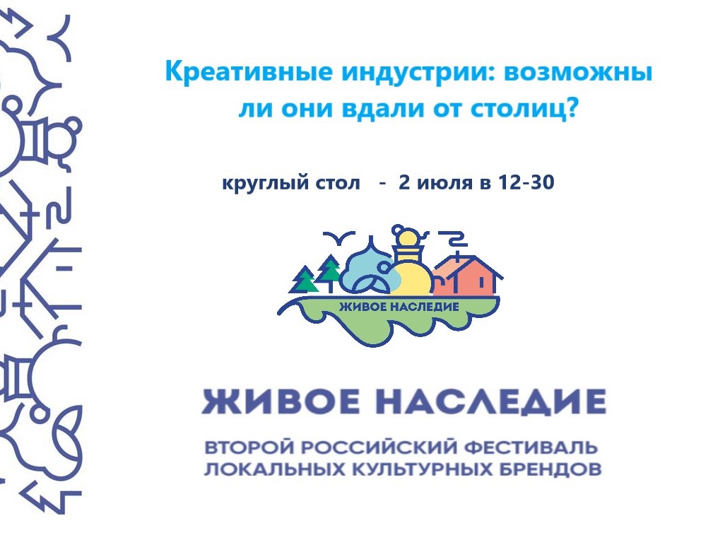 Круглый стол "Креативные индустрии: возможны ли они вдали от столиц?" пройдет с 12-30 до 14-20 в зале им. В.Л. Глазычева.