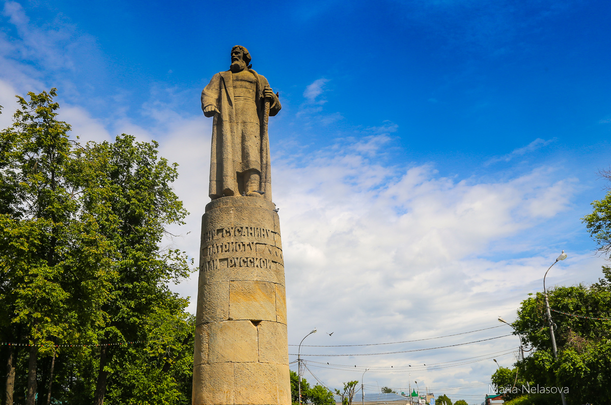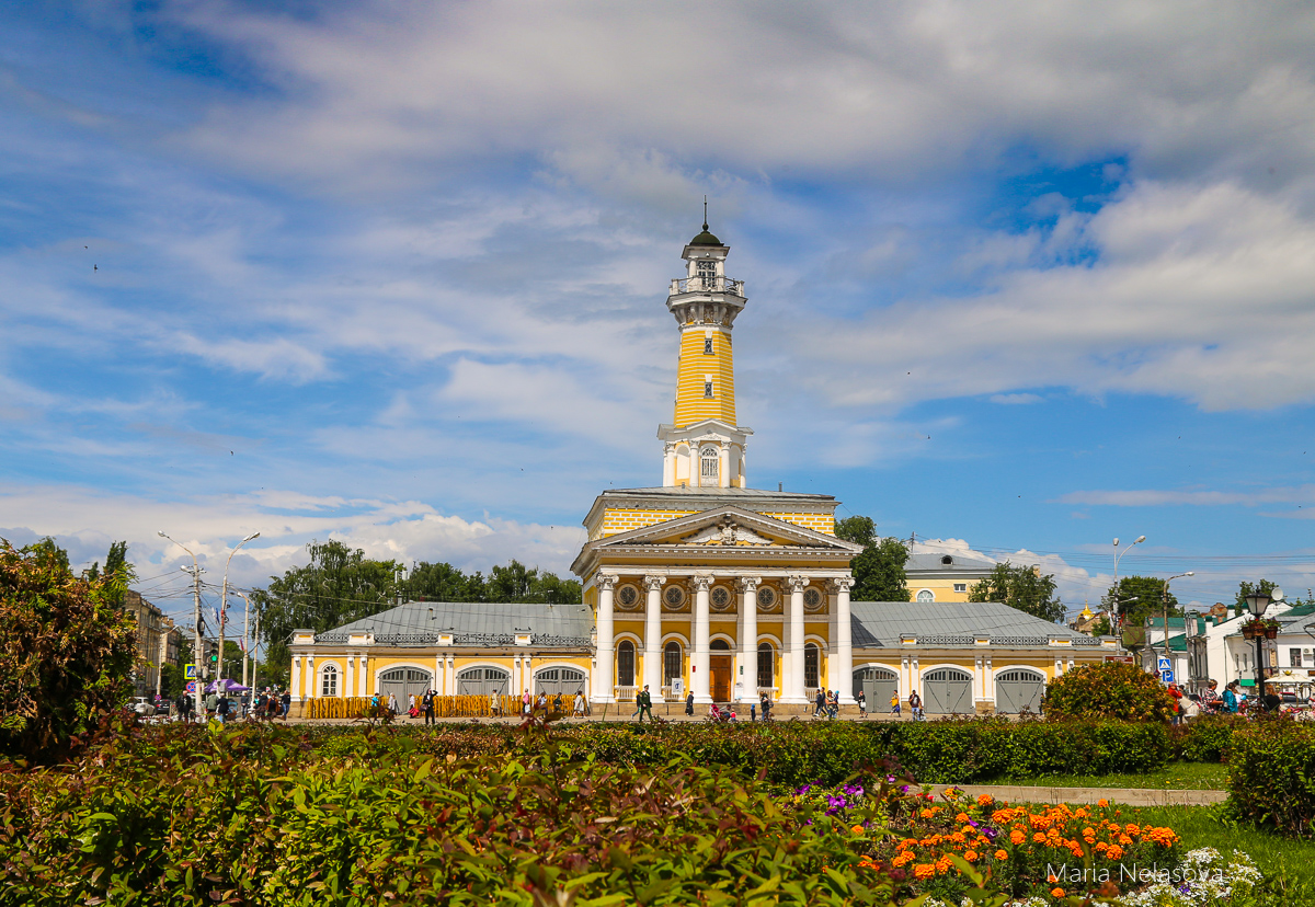 "Сусанинская площадь – исторический и топографический центр города с регулярной парадной застройкой в стиле провинциального классицизма. Архитектурной доминантой многоугольной площади, собирающей в одну точку веер улиц-лучей, стало утилитарное сооружение – пожарная каланча.