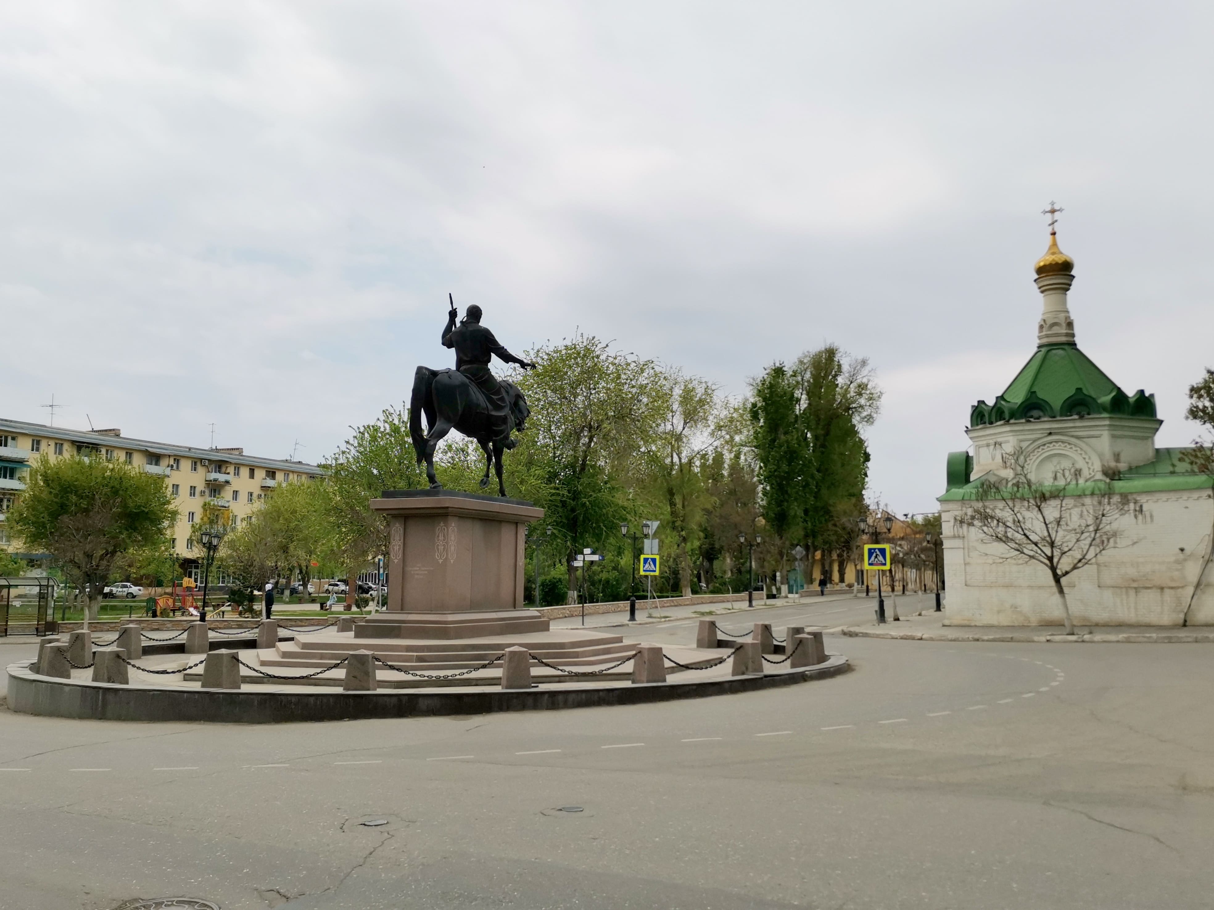 Архитектурным стилем астраханский интернационал не ограничивается. Вот у Благовещенского монастыря установили на деньги Республики Казахстан памятник Курмангазы Сагырбаеву - поэту, музыканту-домбристу и "совести" казахского народа.