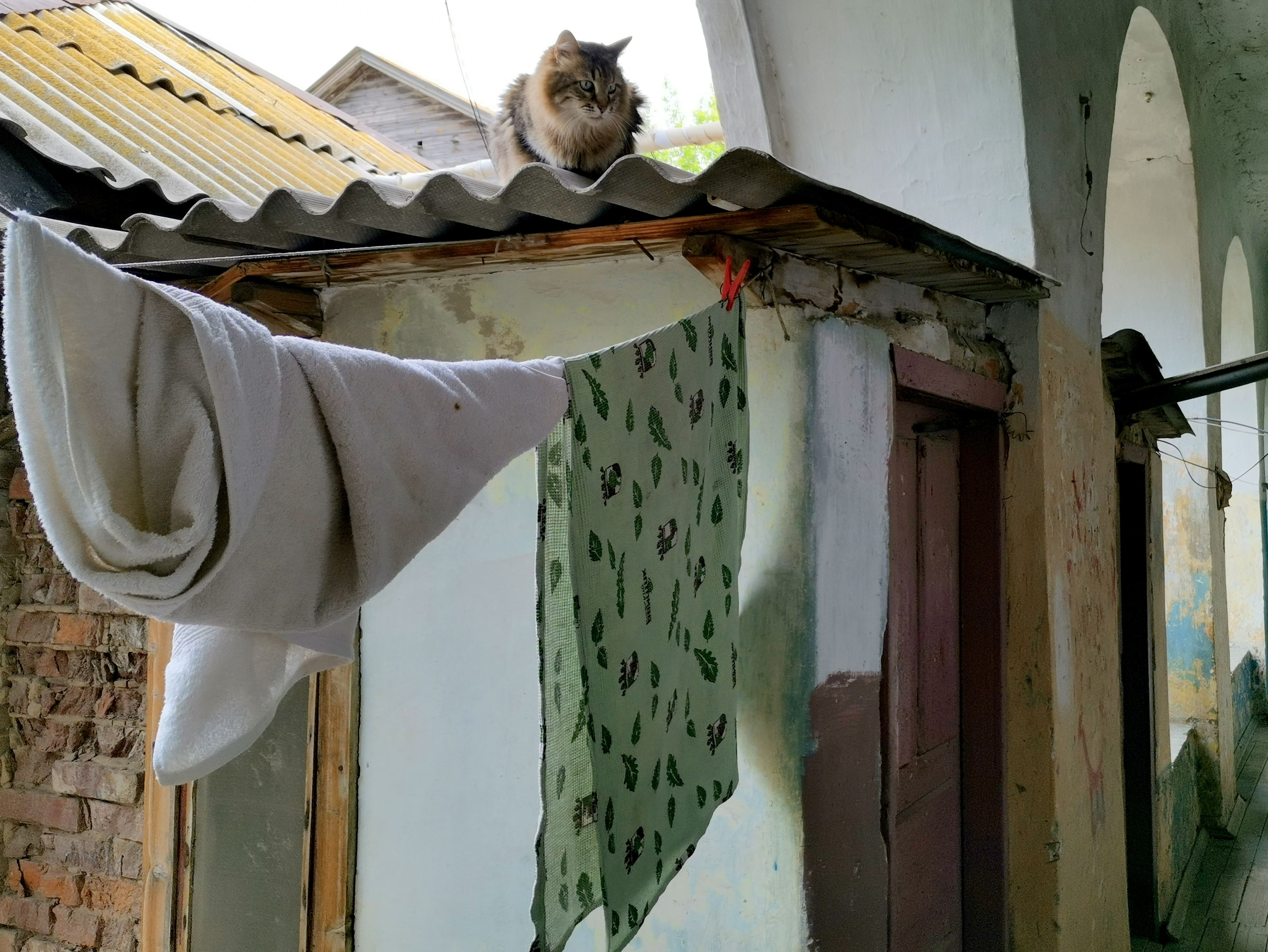 А рядом - осколок настоящей неметчины: деревянный дом пастора и каменная кирха, переделанная в жилой дом. Вот портик храмовый еще сохранился, а балкончики с бельём - приютились у алтарной апсиды. Кстати, именно в этом доме жил оскароносный режиссер Владимир Меньшов, Москва которого слезам не верит.