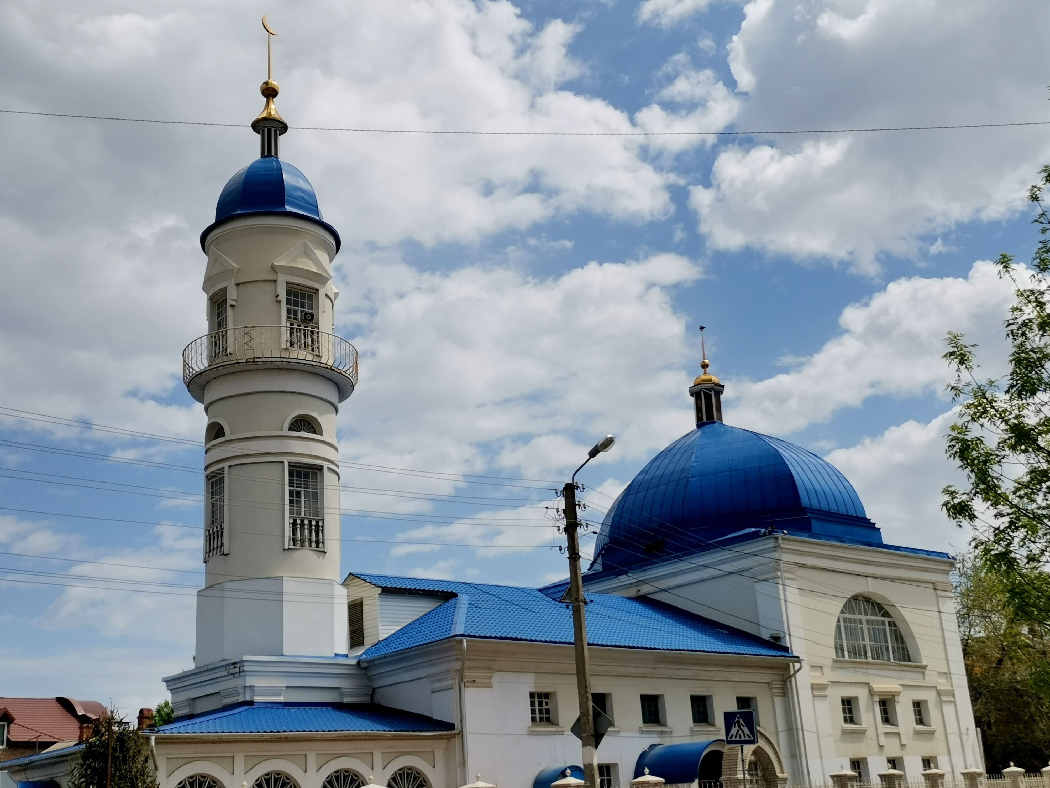 Мечети Астрахани, напротив, пахнут Европой. Вот самая старая Белая мечеть (1810) - вполне себе русский классицизм, только башенка-минарет поуже колокольни.