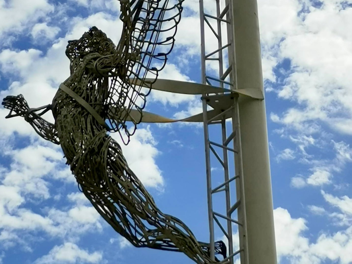 Монумент получлся необычным во всех смыслах. Греческий миф для советской армии - где это видано? Крыло, одновременно устремленное в небо и вдоль земли! В нем считывается сразу и образ самолёта, и аллюзия птицы. И технология производства - уникальная. Спец из Капустина Яра - соседнего с Ахтубинском полигона испытания зенитных ракет - спаял металлические листы памятника прямо под открытым небом, что ранее никому не удавалось. Ту же технику в мухинском "Рабочем и колхознице" применили на заводе со спецоборудованием. И то пришлось отправлять на ремонт, в то время как "Крыло Икара" стоит с 1978 года как новенькое! Ибо каркас его облеплен изнутри гипсом, вбирающим лишнюю влагу и остужающим тепло степного солнца. Советские мастера как бы превосходят Дедала, давая летчикам-икарам жизнь будущего!