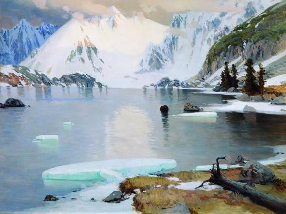 Рядом с поселком Акташ недалеко от озера находится меторождение ртути. И сразу же вспомнился рассказ "Озеро горных духов" писателя и геолога Ивана Ефремова, который читала в детстве. В нем рассказывается о том, как благодаря картине с удивительным сочетанием красок и рассказу художника, было найдено месторождение ртути рядом с озером. Я недавно перечитывала этот рассказ, когда писала о художнике Чорос-Гуркине - прототипе художника Чоросова из рассказа. И сделала то. что было недоступно в доинтернетную эпоху: нашла картину.