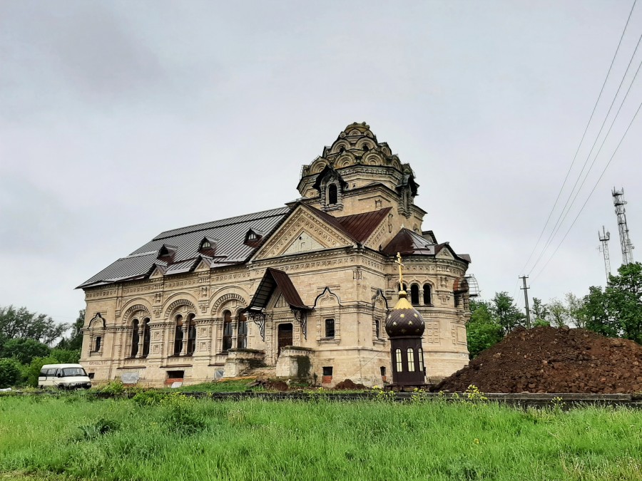 Мы осмотрели усадьбу Степановых-Мальцовых - известных меценатов и “стекольных королей” - она закрыта, ведется реставрация. Потом направились к селу Березовка, где стоит невероятной красоты храм Дмитрия Солунского (1897), построенный Ю.С. Нечаевым-Мальцовым по просьбе крестьян и в честь воинов, погибших во времена Куликовской битвы.