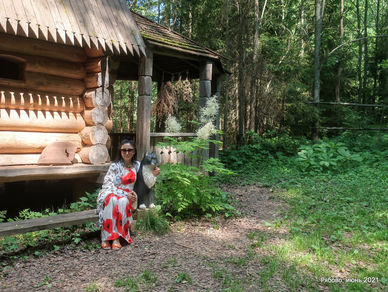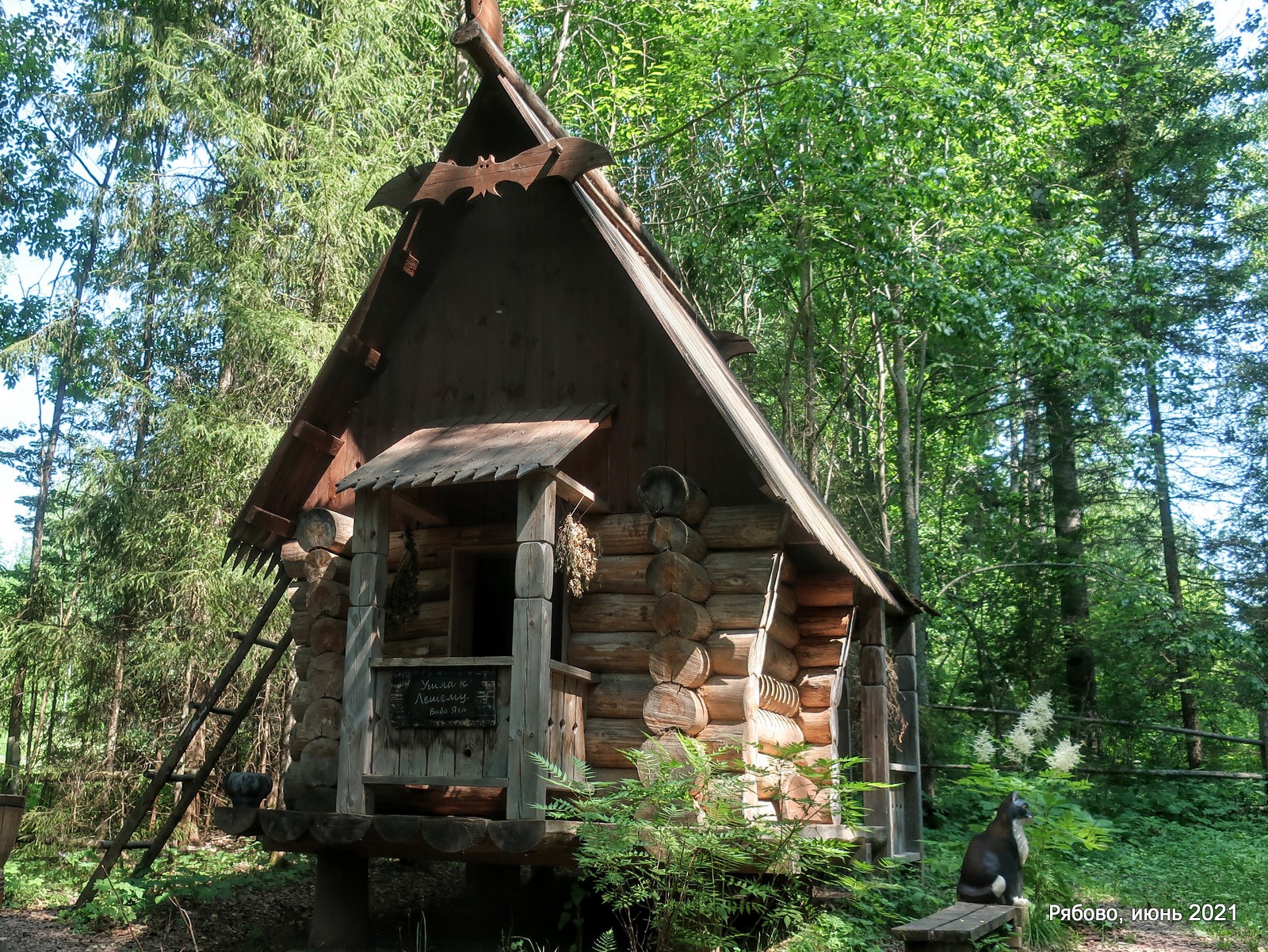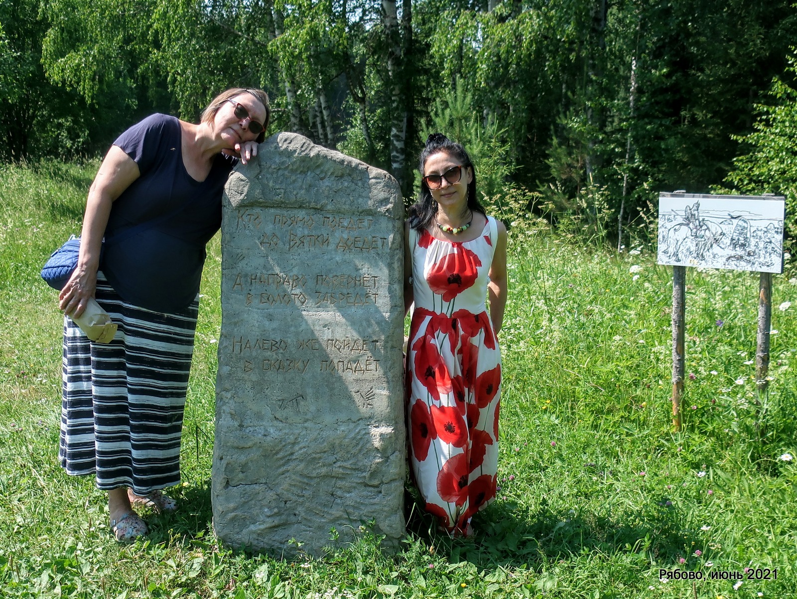 А чуть отошли от дома-музея Васнецовых - и вот тебе сказочное царство, дорожка ведет то к Камню, где надо выбрать свою дорогу, то к дому Бабы Яги (и подруга тут же кидается фотографироваться то со ступой и метлой, то с волшебным котом).