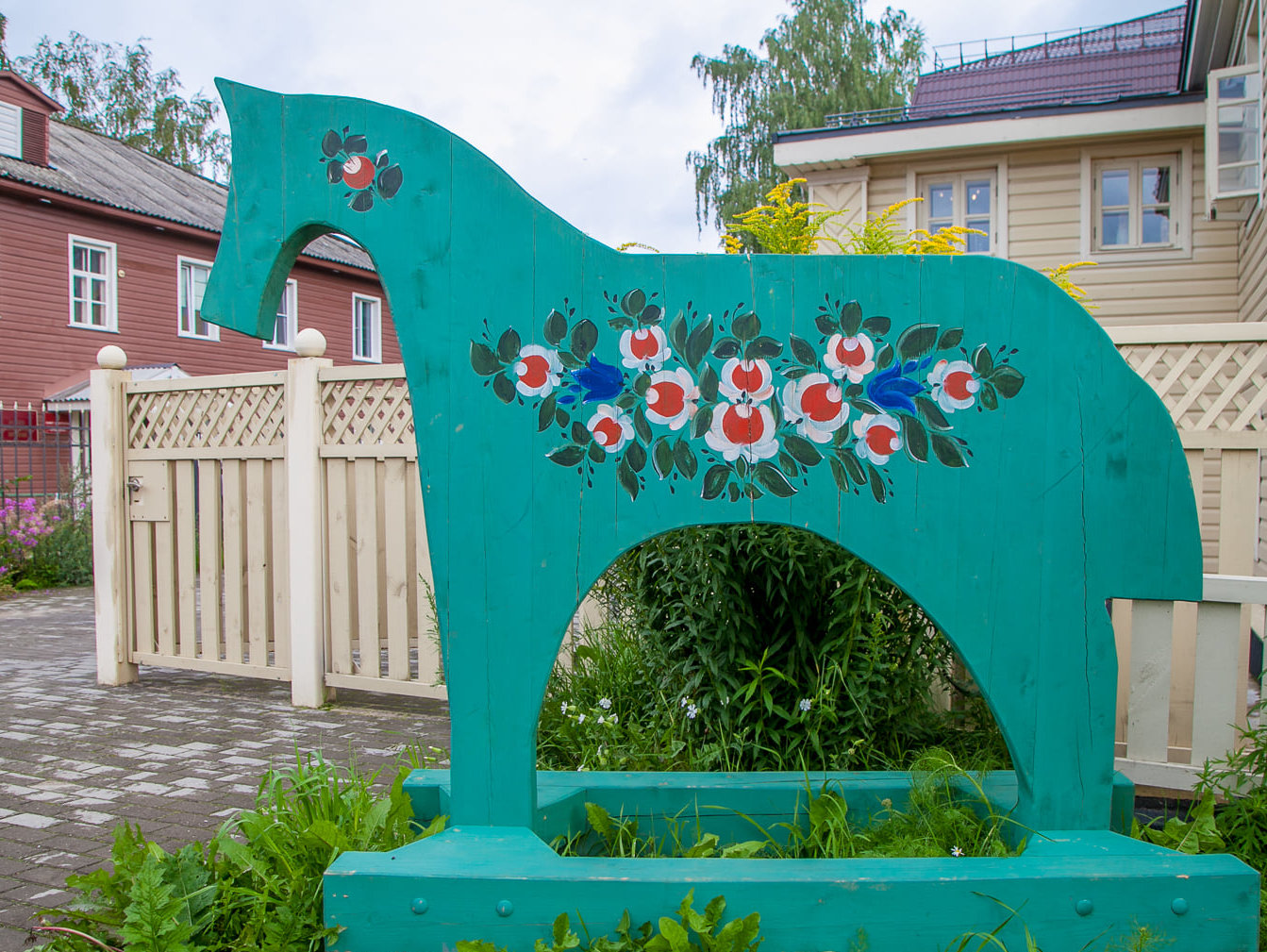 "Сначала мы взяли свободно-кистевые росписи Поважья, вот эти розаны и тюльпаны, и постарались их внедрить в городскую среду" - говорит Жанна Дементьева, работавшая заместителем главы Вельского района и ушедшая из чиновников, чтобы делать культурные проекты - "Так появились расписные остановки, скамейки, указатели улиц. Люди узнали свою историю и сами начали расписывать - появилось несколько студий, ТИЦ, мастер-классы в центре "Берендей". Даже расписные лошадки теперь "скачут" на улицах города.