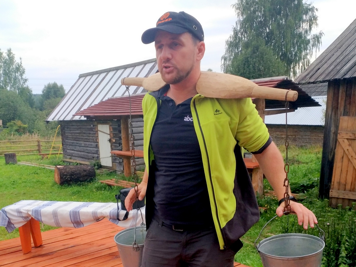 "Но мы вот не тужим, народным творчеством живём. А чем ещё нам тут заниматься? Вот изба стояла пустая, многострадальная: конца XIX века, ее несколько раз разбирали и переносили в новое место. Да вы не волнуйтесь, заходите, она крепкая. У нас ведь сруб перенести мужикам и собрать заново - эдак 3 дня отсилы. Дак вот мы взяли эту избу, отремонтировали, создали ТОС - наше территориальное самоуправление. И от этого самоуправления теперь пляшем и поем".