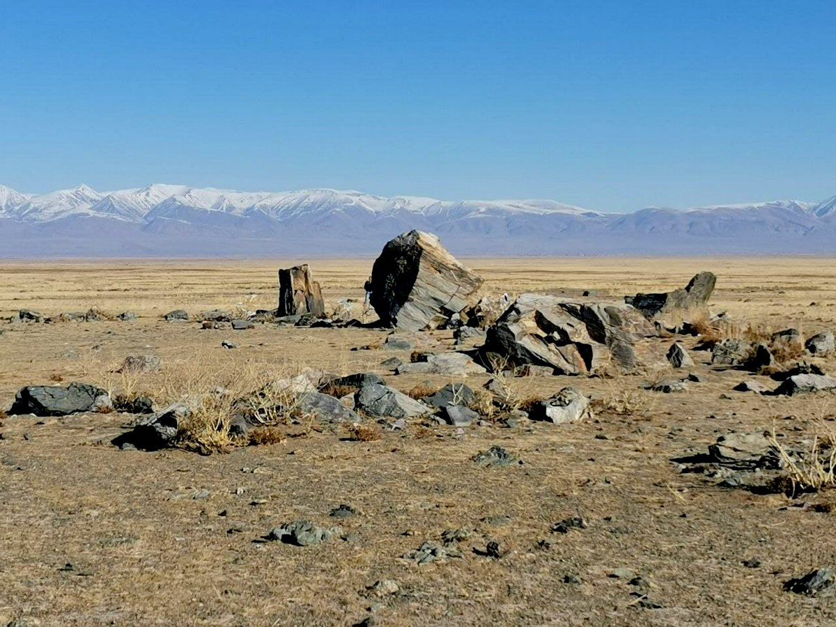 Пролетая «Марсианские горы» думаешь, что вот там, наверное, уже совсем безжизненно. Но там вдруг открывается очередной затерянный мир. Чуйская степь, а вернее тундростепь - удивительная горная котловина на высоте 1758 м. над уровнем моря оказывается местом удивительно обжитым. Для места, где летом и зимой температура за 40 (в плюс и минус соответственно). На поляне вокруг райцентра Кош-Агач тут выстроился целый пояс крупных сел, что хранят культуры местных казахов и теленгитов. А на горизонте - ни одного деревца, лишь пустота. Но ее разбавляют не только дома, но и комплексы мегалитов.
