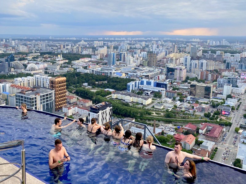 С недавних пор в Екатеринбурге доступна свобода парения над городом. Эти необычайные впечатления можно испытать в бассейне, открывшемся на крыше небоскреба “Высоцкий”. Знатоки утверждают: уральский бассейн лучше, чем в Куала-Лумпуре!