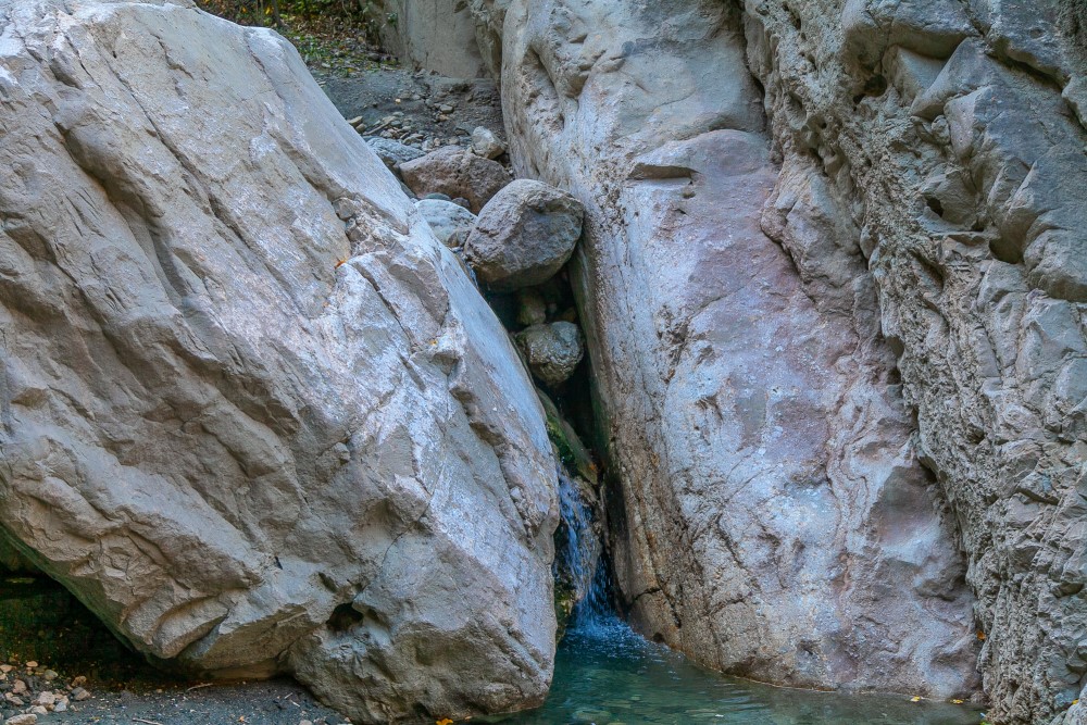 По дну ущелья протекает узкий ручей, но узкий он в сухую погоду. Когда в горах идут дожди или тает снег, теснина может стать опасной и непроходимой. Удивительно, но этот ручей привел к образованию огромного ущелья. Местами ручей образует небольшие заводи и водопадики, очень живописные.