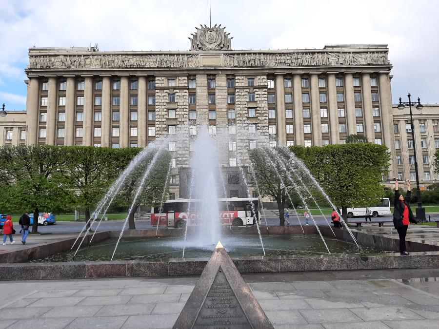 А заканчивается маршрут автобусов из аэропорта на Московской площади - это крупнейшая площадь Петербурга и одна из самых больших в Европе. Именно здесь должен был располагаться центр нового советского Ленинграда, здесь планировалось проводить парады, но осуществлению этих планов помешала война. Сейчас на Московской площади находится здание Дома Советов, куда должны были переехать органы управления Ленинградом, а также памятник Ленину и комплекс фонтанов.