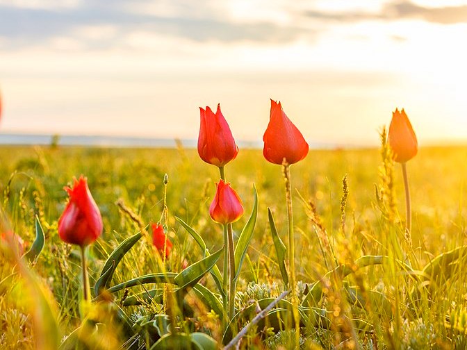 Из тумана царственно выходили фазаны, а шумоголовые ушастые зайцы неслись впереди по дороге. Мы пили чай из термоса и спорили над навигатором. Совы, бесшумно заглядывали в окно. Светало. И в этот момент я увидела тюльпаны. Весной Крымская степь зацветает тысячами тысяч цветов.