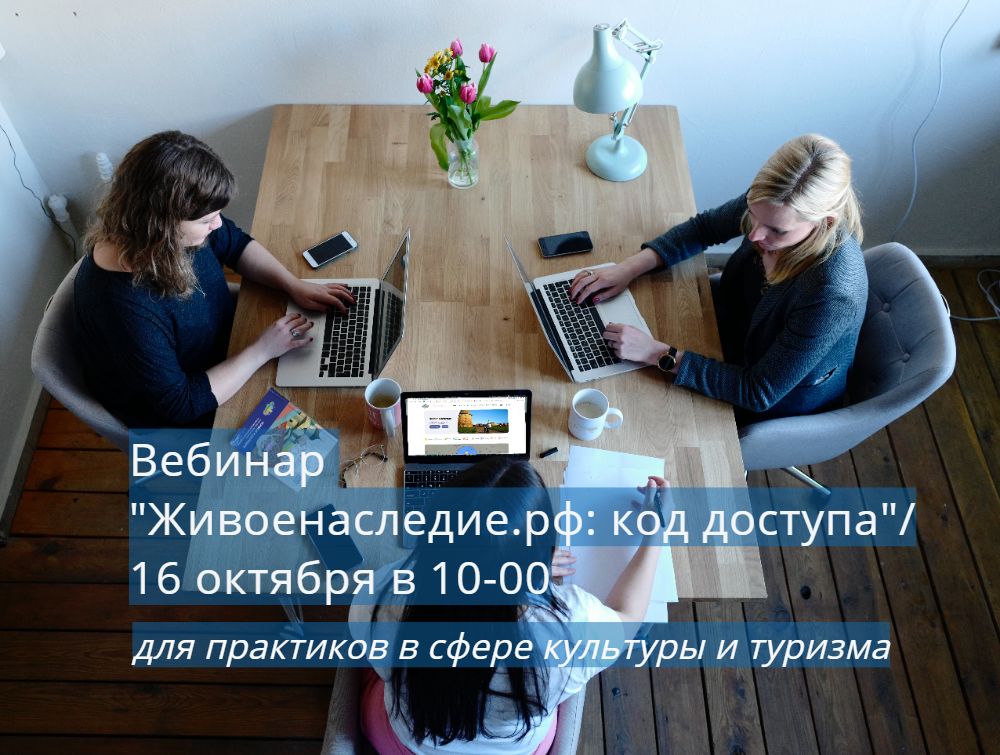 Приглашаем 16 октября в 10-00 (время московское) практиков в сфере культуры и туризма на вебинар "Живоенаследие.рф: код доступа"!