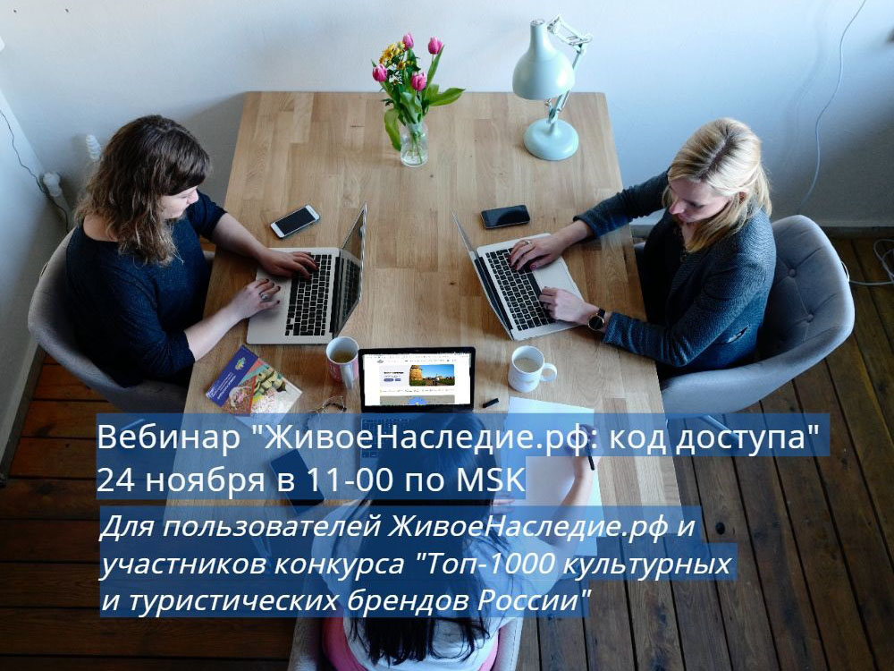 Приглашаем 24 ноября в 11-00 (время московское) пользователей портала ЖивоеНаследие.рф и участников конкурса "Топ-1000 культурных туристических брендов России" на вебинар "Живоенаследие.рф: код доступа"!