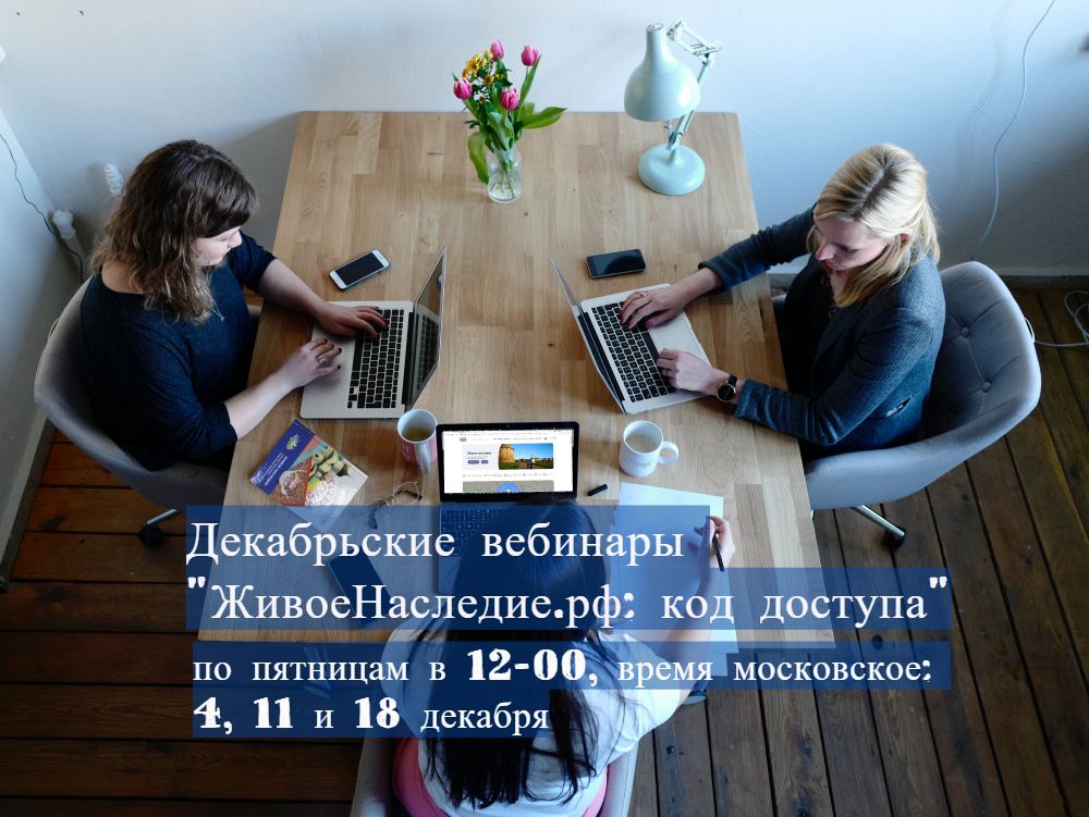 Вебинары “ЖивоеНаследие.рф: код доступа” пройдут по пятницам в 12-00 по московскому времени (продолжительность вебинара - около 1 часа).