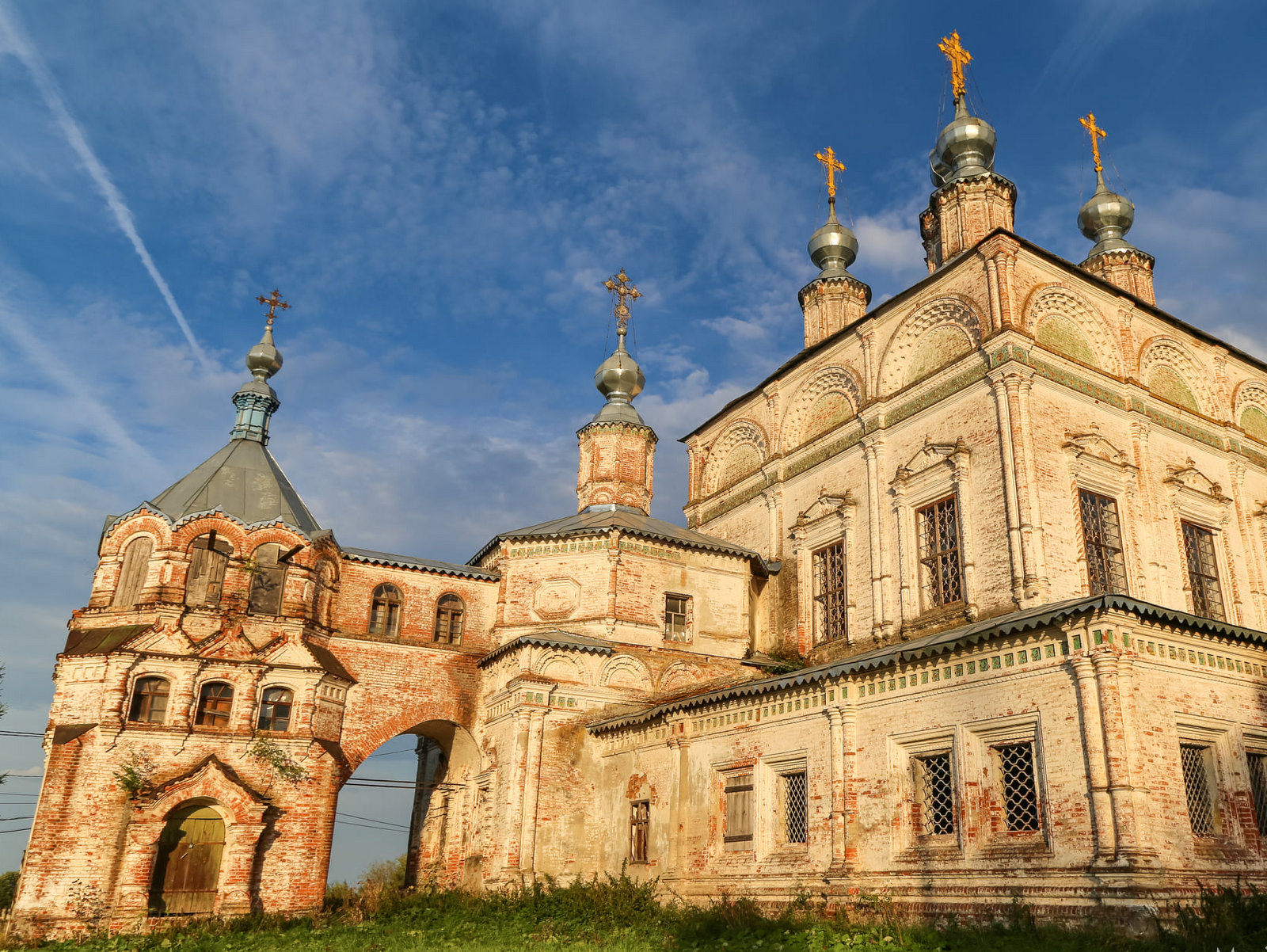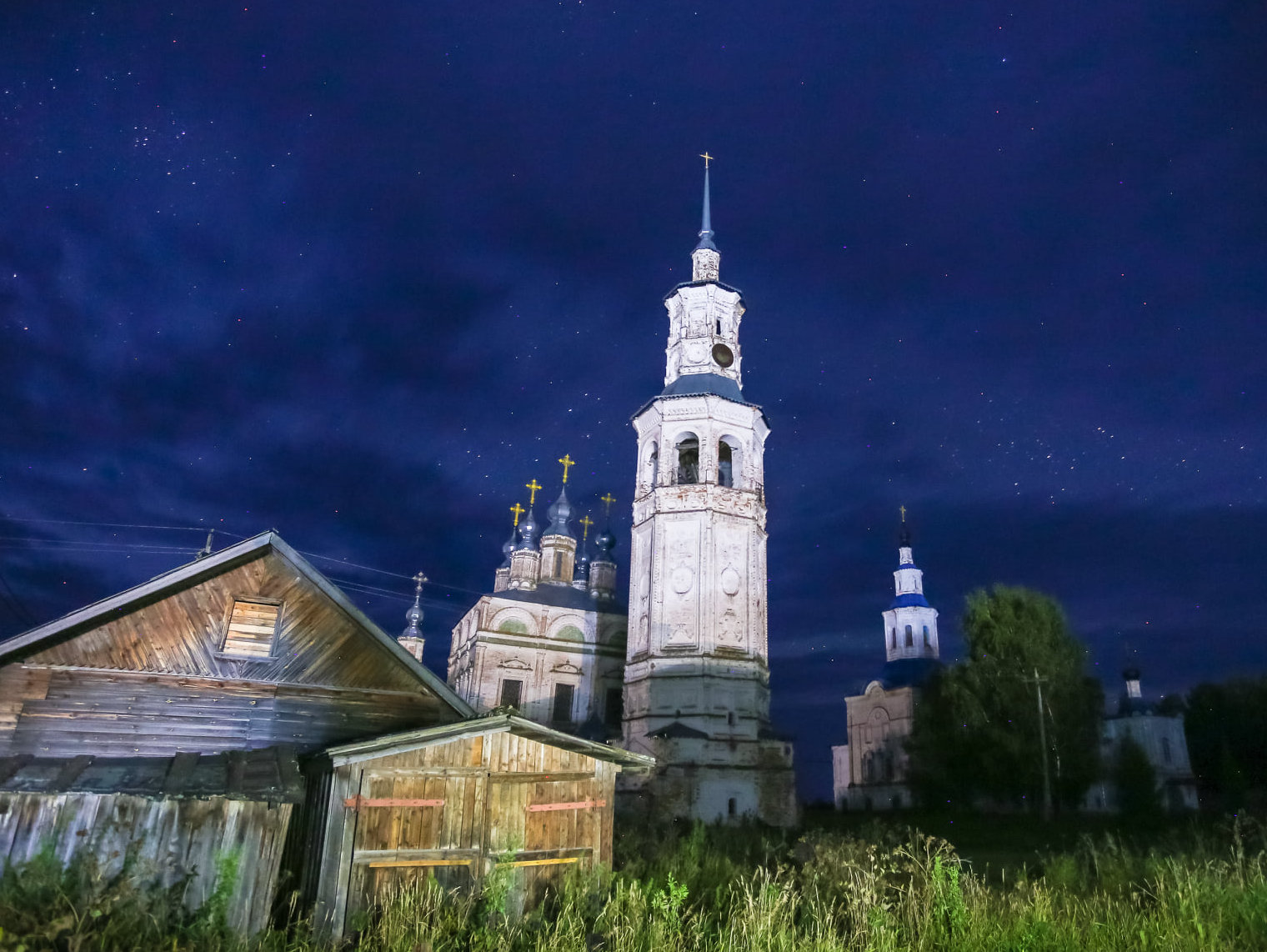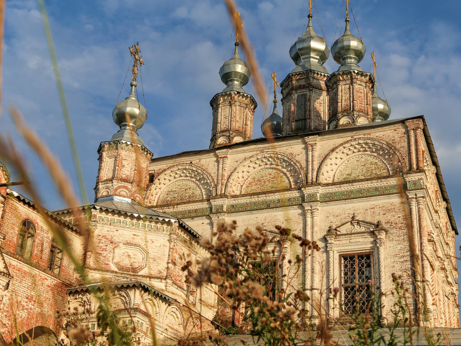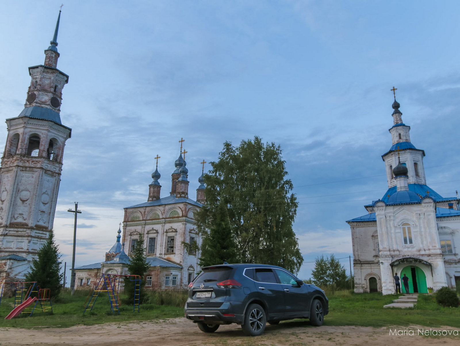 Ахнули еще издали. В какой-то, по современным меркам глуши, нас встречал красивейший Воскресенский соборный комплекс, построенный в 1698 году! Здесь, тотемская архитектурная традиция встретилась с вятской, из чего получилось совершенно необычное сочетание.